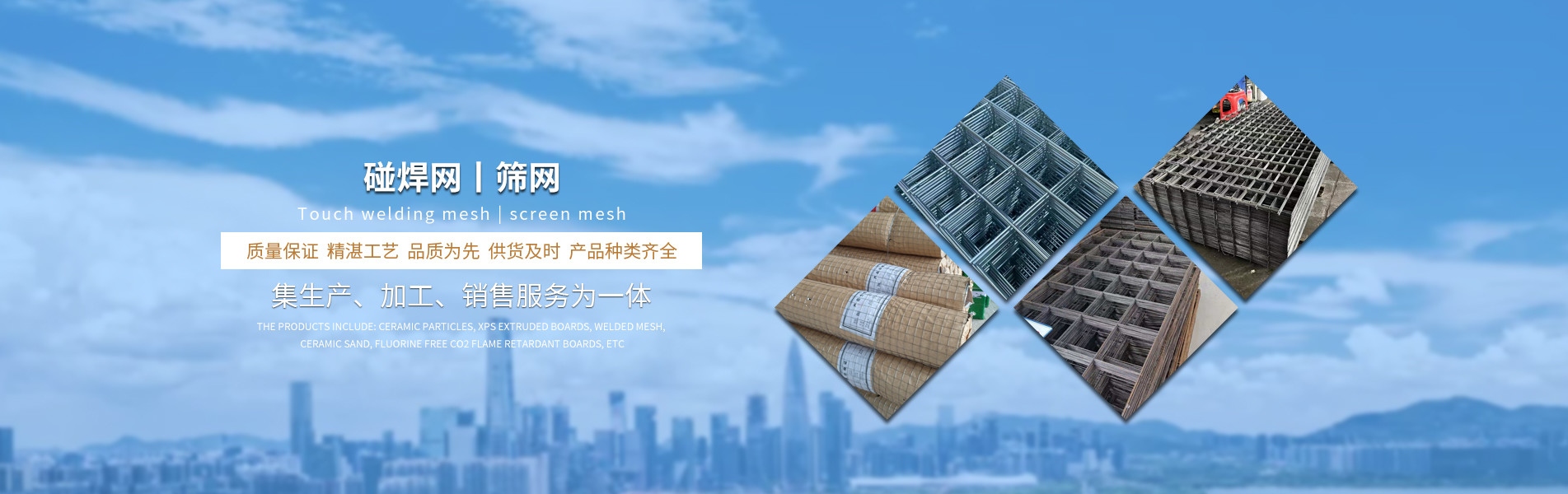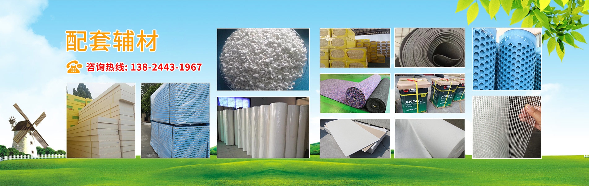 產(chǎn)品有:陶粒、XPS擠塑板、陶砂、無(wú)氟co2阻燃板、擠塑復(fù)合板。配送材料有:碰焊網(wǎng)、專用膠水、泡沫板、巖棉板、玻璃棉氈、珍珠巖、聚酯無(wú)紡布、纖維網(wǎng)格布等。